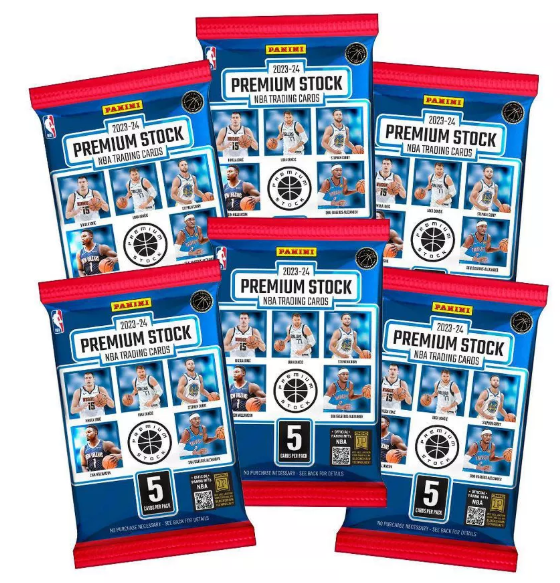 2023-24 Premium Stock Basketball features a 300-card set including 279 Base and 21 Base Rising Stars! Look for a variety of Retail Exclusive parallels including Gold Prizm /10 and 1-of-1 Gold Vinyl